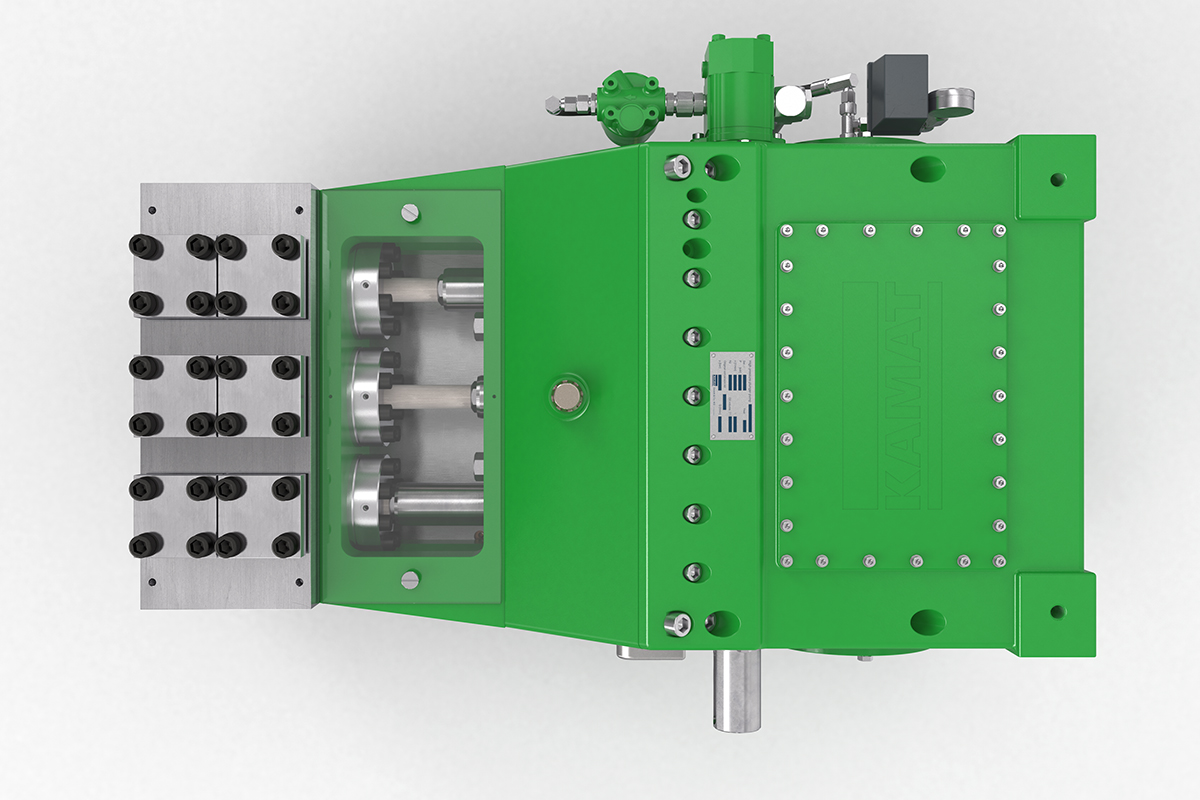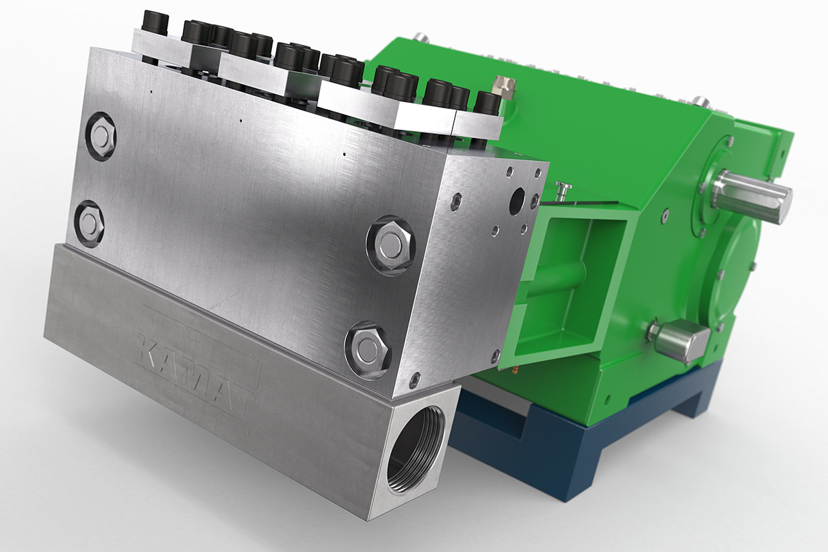 K35000高壓泵的驅(qū)動(dòng)功率為350 kW,非常適合噴射和液壓應(yīng)用。 例如,它經(jīng)常與大型移動(dòng)式噴射系統(tǒng)一起使用,已在化工行業(yè)服務(wù)多年,并在采礦行業(yè)滿(mǎn)足流量從400至600 l升/ 分鐘的需求。 在這種情況下,帶有強(qiáng)制潤(rùn)滑齒輪和油冷卻器的K35000可以滿(mǎn)足24/7全天候運(yùn)行的要求。 K35000高壓泵采用經(jīng)典的KAMAT模塊化組件系統(tǒng)構(gòu)建,因此可以靈活地適應(yīng)工作壓力和介質(zhì)等要求。 因此,它也經(jīng)常用于過(guò)程處理領(lǐng)域。